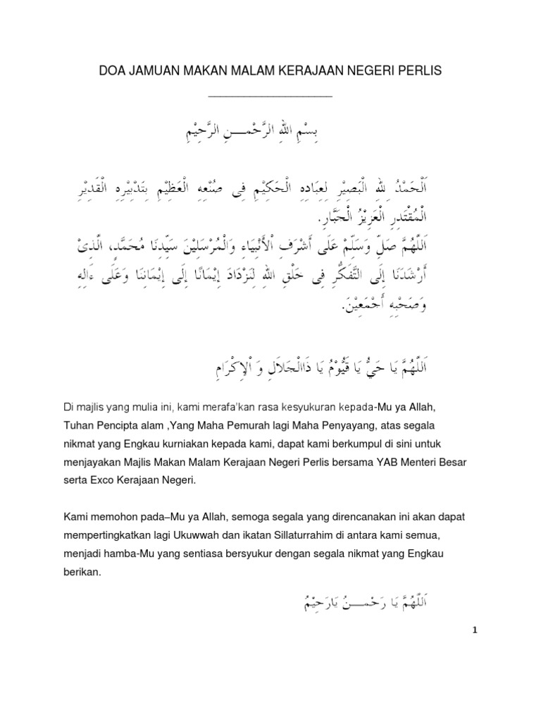 Doa Jamuan Makan Malam Kerajaan Negeri Perlis Pdf
